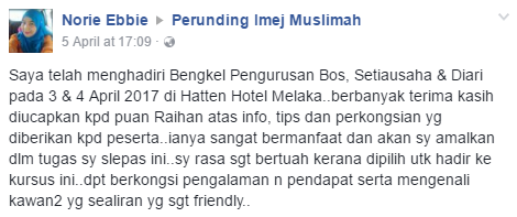 Kursus Transformasi Imej Profesional & Pengurusan Majlis | IDB | 11-13 Oktober 2016